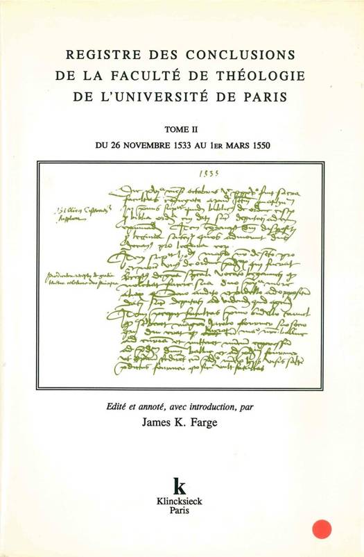 En novembre 1533, le registre de la Faculté est saisi par le roi à la suite des controverses suscitées par les sermons de Gérard Roussel, aumônier de Marguerite de Navarre. Ce nouveau registre, ouvert en décembre, fait écho à la répression qui s'abat alors sur ces réformateurs qui deviendront des Réformés et manifeste les positions conservatrices de la Faculté.