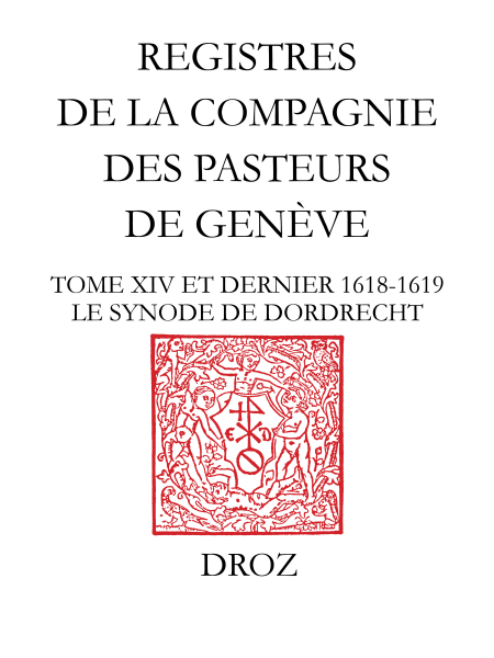 INTRODUCTION. I. LE SYNODE DE DORDRECHT. La députation genevoise au synode. Le synode de Dordrecht. Enjeux théologiques. Enjeux sociopolitiques. Les théologiens de Genève et ceux des Provinces-Unies. Convocation du synode et Genève. La délégation française. Ouverture et composition du synode. Première phase : De l’ouverture du synode à la comparution effective,des ministres remontrants. Deuxième phase : De la comparution des Remontrants à leur expulsion. Troisième phase : La rédaction des jugements sur les 5 articles,de la controverse et les divisions entre les délégués. Quatrième phase : L’élaboration des canons. Cinquième phase : De la signature des canons à leur réception solennelle. Retour de Diodati et de Tronchin à Genève. II. AFFAIRES DE LA COMPAGNIE. L’avènement de l’électeur palatin Frédéric V sur le trône de Bohême. La reprise des persécutions contre les Églises du marquisat de Saluces et du Piémont. Gaspard Alexius et les troubles qui agitent les Grisons et la Valteline. Les rapports entre la Compagnie et le Magistrat. La Compagnie et le Consistoire. L’Académie et le Collège. Les prolongements de la controverse avec Pierre Coton. La Compagnie et l’administration de l’Hôpital. III. CRITÈRES D’ÉDITION. AVIS AU LECTEUR . SECRÉTARIAT ET MEMBRES DE LA COMPAGNIE. DÉLÉGATIONS ET MEMBRES DU SYNODE DE DORDRECHT. Bureau du Synode. Délégation des États-Généraux. Délégations des Provinces-Unies. Délégation des professeurs des Provinces-Unies. Délégations des Églises étrangères. Remontrants convoqués par le Synode. REGISTRES DE LA COMPAGNIE. 1618 . 1619