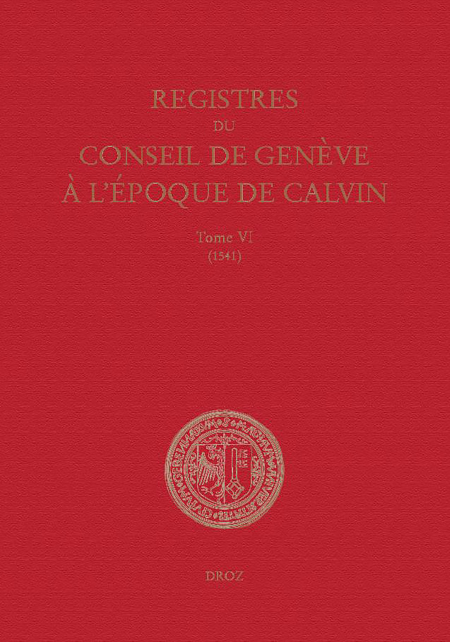 L’année 1541 est celle du retour de Calvin à Genève et de l’adoption des ordonnances ecclésiastiques, qui non seulement codifient les pratiques liturgiques, mais marquent également la naissance de la Compagnie des Pasteurs et du Consistoire, dotant la République d’une sorte de tribunal du bien croire et du bien vivre. En cette année 1541, la politique extérieure, essentiellement tournée vers Berne, est marquée par le renouvellement de la combourgeoisie et les négociations au sujet des terres de Saint-Victor et Chapitre, objet de litige depuis 1536, qui débouchent sur l’accord connu sous le nom de premier Départ de Bâle. En matière de politique intérieure, l’année 1541 se signale par la spécification des responsabilités et des devoirs des magistrats et des principaux officiers de la Ville, le renforcement de l’ordre public, le développement de l’organisation et des procédures judiciaires, ainsi que la défense de la Cité, qui engloutit la majorité de ses revenus.