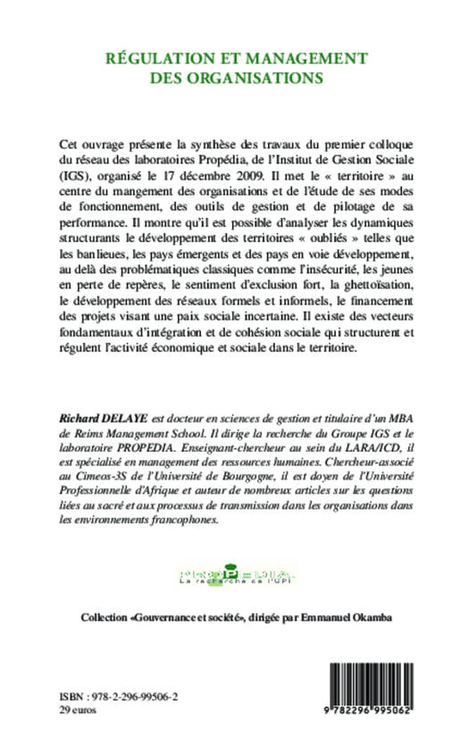 Cet ouvrage met le "territoire" au centre du management des organisations et de l'étude de ses modes de fonctionnement, des outils de gestion et de pilotage de sa performance. Il montre qu'il est possible d'analyser les dynamiques structurant le développement des territoires "oubliés", tels que les banlieues, les pays émergents et pays en voie de développement au-delà des problématiques classiques comme l'insécurité, les jeunes en perte de repères, la ghettoïsation, le développement des réseaux formels et informels, le financement des projets visant une paix sociale incertaine.