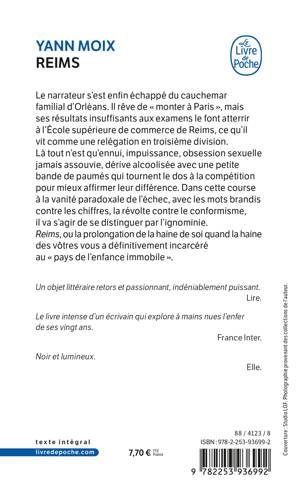 Le narrateur s’est enfin échappé du cauchemar familial d’Orléans. Il rêve de « monter à Paris », mais ses résultats insuffisants aux examens le font atterrir à l’École supérieure de commerce de Reims, ce qu’il vit comme une relégation en troisième division. Là tout n’est qu’ennui, impuissance, obsession sexuelle jamais assouvie, dérive alcoolisée avec une petite bande de paumés qui tournent le dos à la compétition pour mieux affirmer leur différence. Dans cette course à la vanité paradoxale de l’échec, avec les mots brandis contre les chiffres, la révolte contre le conformisme, il va s’agir de se distinguer par l’ignominie. Reims, ou la prolongation de la haine de soi quand la haine des vôtres vous a définitivement incarcéré au « pays de l’enfance immobile ».