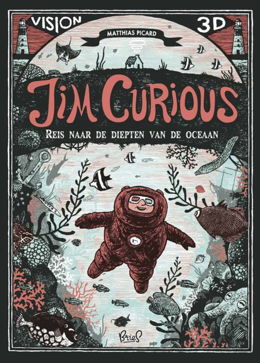 Jim Curious is een verhaal zonder woorden voor avonturiers van 7 tot 77 jaar. Het boek is een kruising tussen strip en prentenboek, met een knipoog naar het œuvre van Jules Verne. De 3D-techniek verrijkt de tekeningen met een extra dimensie zodat de lezer zich, met het 3D-brilletje op de neus, als het ware metgezel waant van onze held Jim.