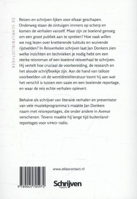 In 'Reisverhalen schrijven' laat Jan Donkers zien welke inzichten en technieken je nodig hebt om een sterk reisverhaal of een boeiend reisverslag te schrijven. Reizen en schrijven lijken voor elkaar geschapen. Onderweg staan de zintuigen immers op scherp en komen de verhalen vanzelf. Maar zijn ze boeiend genoeg om een groot publiek aan te spreken? Hoe vaak willen we nog lezen over knetterende tuktuks en wuivende rijstvelden? Donkers maakt duidelijk hoe cruciaal de voorbereiding, de research en het aloude schrijfboekje zijn. Aan de hand van talloze voorbeelden uit de wereldreisliteratuur toont hij aan wat het verschil is tussen een saaie en een boeiende reportage, en waar de reis echte verhalen oplevert.