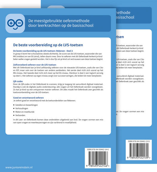 Met de boeken van Junior Einstein bereiden kinderen – met veel succes – zich al meer dan een decennium voor op toetsen. Elk boek is gemaakt door leerkrachten en onderwijsspecialisten onder leiding van Joan Sanders en Michelle Leuveld. Al ruim 10 jaar werken ze met passie samen aan het maken van het beste oefenmateriaal voor kinderen op de basisschool, met name voor toetsvoorbereiding. Kinderen, ouders en leerkrachten gebruiken naar alle tevredenheid de oefenmaterialen van Junior Einstein.