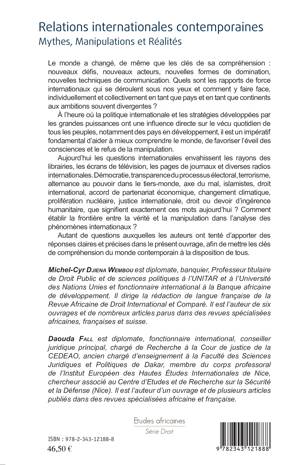 Démocratie, transparence du processus électoral, terrorisme, alternance au pouvoir dans le tiers - monde, axe du mal, islamistes, droit international, accord de partenariat économique, changement climatique, prolifération nucléaire, justice internationale, droit ou devoir d'ingérence humanitaire, que signifient exactement ces mots aujourd'hui ? Comment établir la frontière entre la vérité et la manipulation dans l'analyse des phénomènes internationaux ? Ce livre tente d'apporter des réponses claires et précises afin de mettre les clés de compréhension du monde contemporain à la disposition de tous.