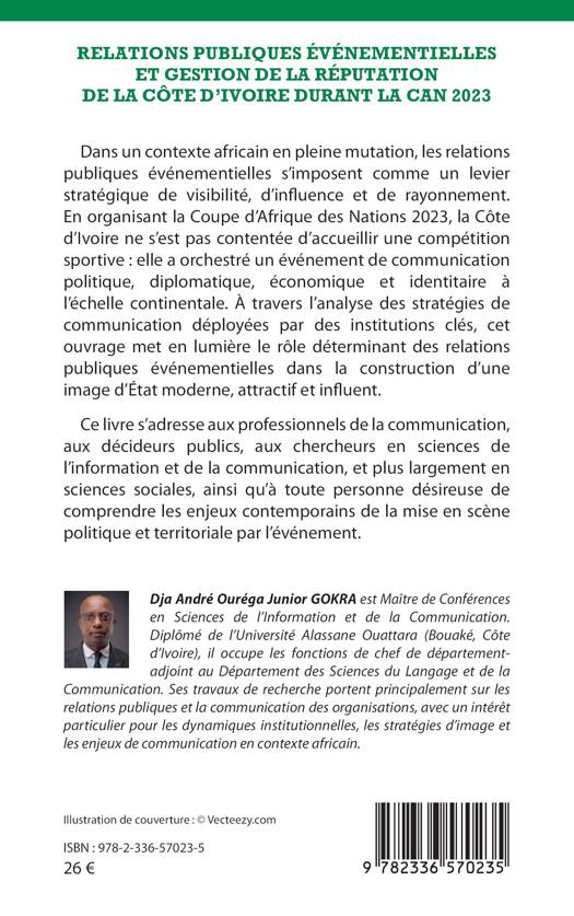 Dans un contexte africain en pleine mutation, les relations publiques événementielles s'imposent comme un levier stratégique de visibilité, d'influence et de rayonnement. En organisant la Coupe d'Afrique des Nations 2023, la Côte d'Ivoire ne s'est pas contentée d'accueillir une compétition sportive: elle a orchestré un événement de communication politique, diplomatique, économique et identitaire à l'échelle continentale. À travers l'analyse des stratégies de communication déployées par des institutions clés, cet ouvrage met en lumière le rôle déterminant des relations publiques événementielles dans la construction d'une image d'État moderne, attractif et influent. Ce livre s'adresse aux professionnels de la communication, aux décideurs publics, aux chercheurs en sciences de l'information et de la communication, et plus largement en sciences sociales, ainsi qu'à toute personne désireuse de comprendre les enjeux contemporains de la mise en scène politique et territoriale par l'événement.