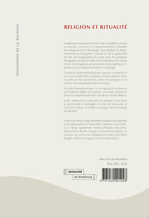 Religion et ritualité réunit des contributions présentées lors du quatrième congrès de la Société francophone de philosophie de la religion organisé à l'université Columbia (New York), en septembre 2019. En ce temps où, comme dit Charles Taylor, la religion est de plus en plus une option parmi celles qui s'offrent au libre choix de l'individu, il se manifeste chez beaucoup une attirance pour une spiritualité dégagée de tout rituel, ne se soutenant que d'elle-même. Croisant ici diverses approches de la ritualité, pensée comme rythme, gestualité, esthétique, performativité, ou encore exode, ces différents essais proposent des réponses à cette notion moderne d'un religieux sans religion."