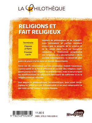 Une analyse claire aux champs d'études variées sur la religion (et les religions), l'un des thèmes au programme de philosophie terminale