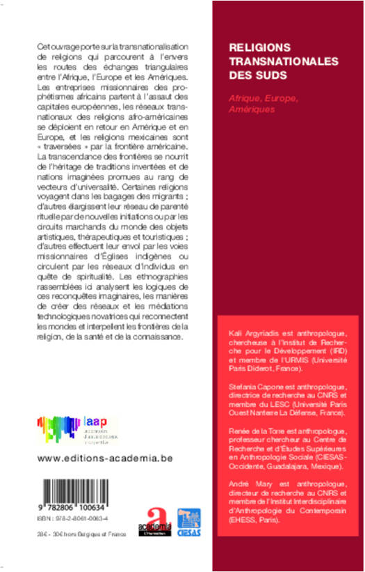 Cet ouvrage réunit des enquêtes ethnographiques récentes portant sur les enjeux des mouvements de transnationalisation religieuse issus des pays du Sud. Il privilégie un triple ancrage, épousant les relations historiques d'échange triangulaire entre l'Afrique, les Amériques, et l'Europe qui ont engendré ces constructions transnationales que sont les christianités africaines, les religions afro-américaines et les nouvelles spiritualités amérindiennes, et qui investissent aujourd'hui les pays du Nord.