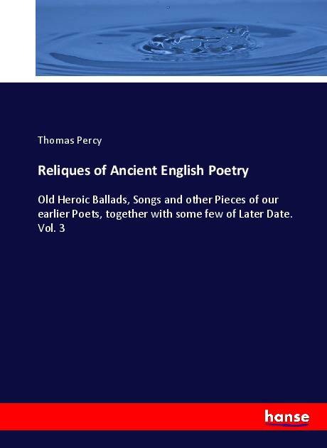 Reliques of Ancient English Poetry - Old Heroic Ballads, Songs and other Pieces of our earlier Poets, together with some few of Later Date. Vol. 3 is an unchanged, high-quality reprint of the original edition of 1886. Hansebooks is editor of the literature on different topic areas such as research and science, travel and expeditions, cooking and nutrition, medicine, and other genres. As a publisher we focus on the preservation of historical literature. Many works of historical writers and scientists are available today as antiques only. Hansebooks newly publishes these books and contributes to the preservation of literature which has become rare and historical knowledge for the future.