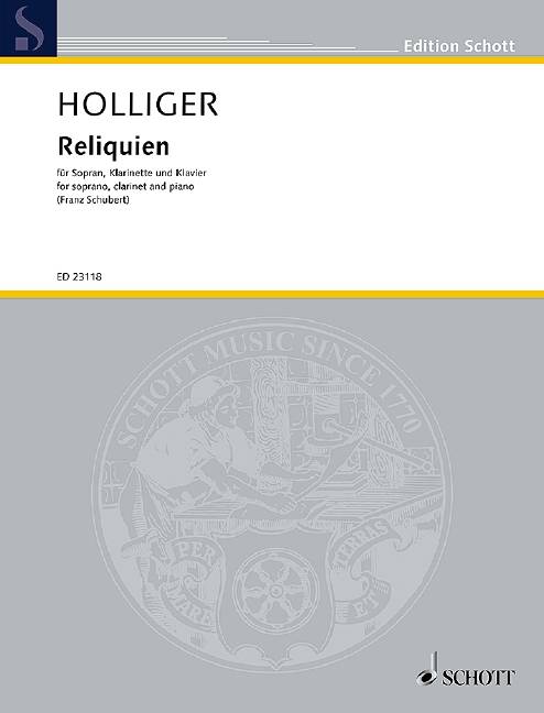 Die Anfrage von Anna Lucia Richter, ob ich ein Gegenstück zu Franz Schuberts Der Hirt auf dem Felsen schreiben könnte, erreichte mich mitten in den Aufnahmen sämtlicher Sinfonien und weiterer Orchesterwerke von Schubert. Durch die von Robert Schumann unter dem Titel Reliquien veröffentlichten, ebenso rührend einfachen wie tief geheimnisvollen Worte Schuberts entstand eine Musik in drei Teilen, die sich zwischen rezitativischen Abschnitten und weit ausschwingenden Ariosi hin und her bewegt. Fast nur als Klangschatten geistert der Beginn des von Schubert mit 16 Jahren geschriebenen, rätselhaften Trauermarsches für neun Bläser Franz Schuberts Begräbnis-Feyer durch die Partitur. Heinz Holliger Schwierigkeitsgrad: 5