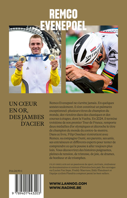 Dans ce livre, Filip Osselaer s'entretient avec Remco, sa compagne Oumi, ses parents, ses amis, ses entraîneurs et différents experts pour tenter de comprendre ce qui le pousse à aller toujours plus loin. Vous découvrirez des histoires poignantes, pleines de tension, de tristesse, de joie, de drames, de bonheur et de triomphes.