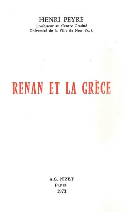 Il est curieux que l'on ne trouve, au sein de l'oeuvre immense laissee par Ernest Renan, aucun ouvrage specifiquement consacre a la Grece. Car, ainsi qu'Henri Peyre le demontre a merveille, la reference passionnee a l'art, a la philosophie, a la mythologie grec, parcourt (comme en fil rouge) l'ensemble des travaux du savant, depuis ses premiers textes. Plus precisement, la Grece, chez Renan, s'exprime simultanement par fragments concrets et par ligne melodique continue,"flottante", d'un dithyrambe sans variations. Si Renan a pu contribuer a la connaissance savante du monde grec (par des etudes linguistiques ou philologiques tres precises), il a developpe par ailleurs une vision plus vaste, plus libre et sans doute plus poetique d'une civilisation idealisee (le fameux - ou fumeux? - "miracle grec"), proclamant l'universalite et l'unicite de sa pensee: "Tout ce que l'Orient semitique, tout ce que le Moyen Age ont eu de philosophie proprement dite, ils le doivent a la Grece"... Dans son rapport avec celle-ci, Renan fleurte avec le romantisme. Conscient de ses zones sombres d'irrationalite, de son "tragique" ou de son hubris, il ne cessera pourtant d'admirer la "fraicheur exquise" de l'esprit grec, plein de fantaisie et d'originalite inventive. Dans son Histoire du Peuple d'Israel, la grande oeuvre crepusculaire, Renan ecrit: "Notre science, notre art, notre litterature, notre philosophie, notre morale, notre politique, notre strategie, notre diplomatie, notre droit maritime et international, sont grecs d'origine (...) Le progres consistera eternellement a developper ce que la Grece a concu, a remplir les desseins qu'elle a, si l'on peut s'exprimer ainsi, excellemment echantillonnes."