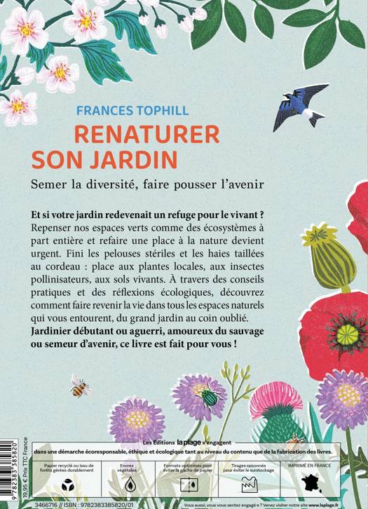 Repenser nos espaces verts comme des écosystèmes à part entière et refaire une place à la nature devient de plus en plus urgent. Fini les pelouses stériles et les haies taillées au cordeau : place aux plantes locales, aux insectes pollinisateurs, aux sols vivants ! À travers des conseils pratiques, des projets et des réflexions écologiques, découvrez comment faire revenir la vie dans tous les espaces naturels qui vous entourent, du grand jardin au petit coin oublié. Jardinier débutant ou aguerri, amoureux du sauvage ou semeur d'avenir, ce livre est fait pour vous !
