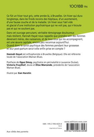 Un témoignage des difficultés engendrées par le fait de devenir mère. Des questionnements individuels et malgré tout universels. L’autrice aborde le sujet de la dépression post partum et de sa prise en charge, encore aujourd’hui peu considérée dans l’univers psychiatrique. 10 à 20 % des mères sont touchées par une dépression post-partum dans les semaines qui suivent leur accouchement, selon l’assurance maladie. Un récit accessible et illustré en noir et blanc avec douceur.