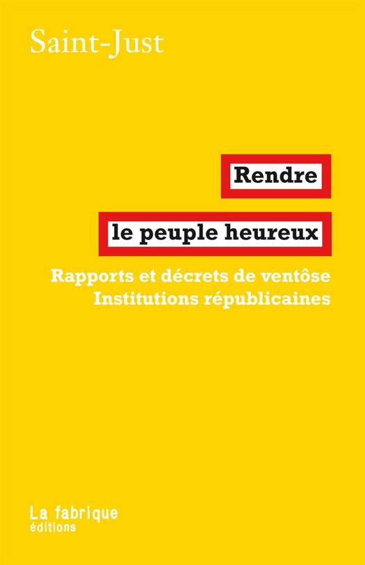 « Ne souffrez point qu'il y ait un malheureux ni un pauvre dans l'État : ce n'est qu'à ce prix que vous aurez fait une révolution et une république véritable » : cette exhortation, c'est le grand thème de Saint-Just, aussi bien dans son rapport devant la Convention le 8 ventôse an II que dans son projet d'« Institutions républicaines ». Il attaque les Indulgents (nous dirions les modérés), « une secte politique qui joue tous les partis ; elle marche à pas lents. Parlez-vous de terreur, elle vous parle de clémence ; devenez-vous cléments, elle vous vante la terreur ; elle veut être heureuse et jouir ». Et les décrets de ventôse prévoient que « les biens des personnes reconnues ennemies de la Révolution seront séquestrés au profit de la République » et distribués aux patriotes indigents. Dans le projet d'« Institutions », Saint-Just cherche à refonder la société au profit des plus faibles – les pauvres, les enfants, les vieillards, les femmes –, à créer les conditions d'une égalité concrète, à lutter contre les formes d'oppression héritées du passé. Car – on l'a un peu oublié de nos jours – « les malheureux sont les puissances de la terre ; ils ont le droit de parler en maîtres aux gouvernements qui les négligent. »