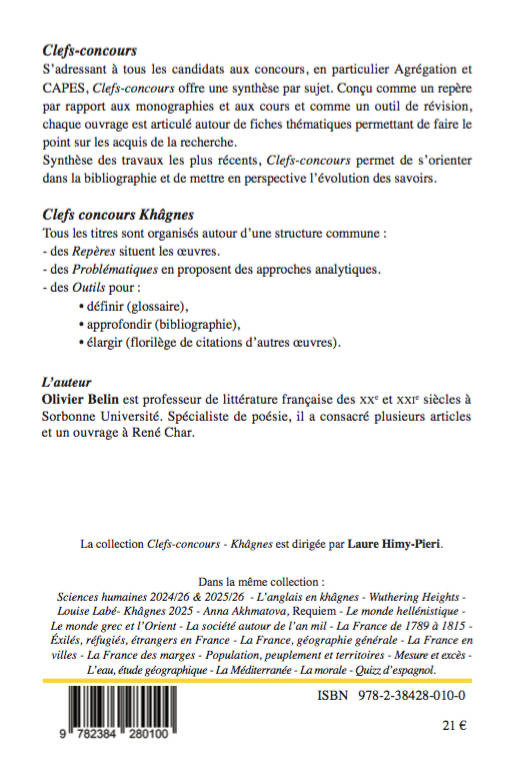 Traitant du programme de lettres modernes du concours de l’ENS pour 2025, l’ouvrage propose tous les éléments nécessaires à la réussite du candidat. L’ouvrage propose une étude du thème à travers chacune des œuvres au programme ainsi qu’une mise en perspective de celui-ci.