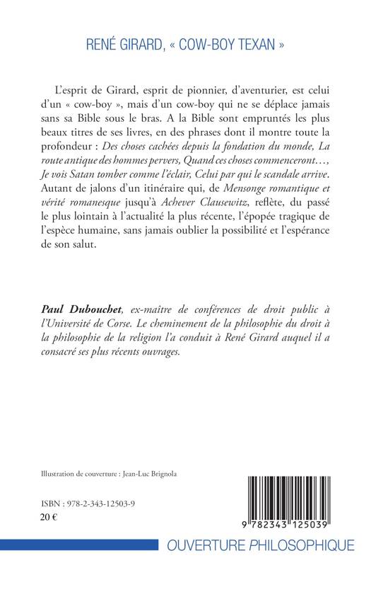 L'esprit de René Girard, esprit de pionnier, d'aventurier, est celui d'un cow-boy qui ne se déplace jamais sans sa Bible sous le bras. À la Bible sont empruntés les plus beaux titres de ses livres. Cet ouvrage met en valeur les jalons d'un itinéraire qui reflète, du passé le plus lointain à l'actualité la plus récente, l'épopée tragique de l'espèce humaine. Sans jamais oublier la possibilité et l'espérance de son salut.