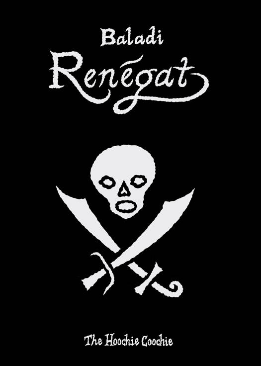 Les vagues naissent, enflent et s’abîment dans les tréfonds de la mémoire d’un pirate captif. Afin de laisser une trace, celui-ci a accepté de témoigner de sa vie passée auprès d’un gentilhomme écrivain. C’est sous cet angle que Baladi, pour son premier livre chez The Hoochie Coochie, choisit d’aborder la piraterie. Inspiré de l’Histoire générale des plus fameux pyrates de Daniel Defoe, Renégat ne se borne aucunement à l’épopée costumée, tant son auteur se joue allègrement des mythes en réalisant un vrai récit d’aventure qui est aussi un essai sur l’honnêteté et le témoignage. Il rétablit ici le pirate dans sa dignité historique : celle du marin prolétaire dressé contre les lois iniques de la marine marchande des XVIIe et XVIIIe siècles.