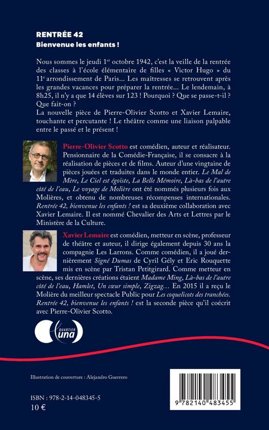 Nous sommes le jeudi 1er octobre 1942, c'est la veille de la rentrée des classes à l'école élémentaire de filles Victor Hugo du 11e arrondissement de Paris...Les maîtresses se retrouvent après les grandes vacances pour préparer la rentrée... Le lendemain, à 8h25, il n'y a que 14 élèves sur 123 ! Pourquoi ? Que se passe-t-il ? Que fait-on ? La nouvelle pièce de Pierre-Olivier Scotto et Xavier Lemaire, touchante et percutante ! Le théâtre comme une liaison palpable entre le passé et le présent !