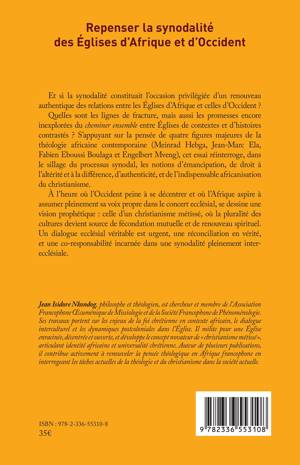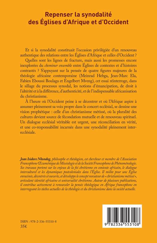 Et si la synodalité constituait l'occasion privilégiée d'un renouveau authentique des relations entre les Églises d'Afrique et celles d'Occident ? Quelles sont les lignes de fracture, mais aussi les promesses encore inexplorées du cheminer ensemble entre Églises de contextes et d'histoires contrastés ? S'appuyant sur la pensée de quatre gures majeures de la théologie africaine contemporaine (Meinrad Hebga, Jean-Marc Ela, Fabien Eboussi Boulaga et Engelbert Mveng), cet essai réinterroge, dans le sillage du processus synodal, les notions d'émancipation, de droit à l'altérité et à la di érence, d'authenticité, et de l'indispensable africanisation du christianisme. À l'heure où l'Occident peine à se décentrer et où l'Afrique aspire à assumer pleinement sa voix propre dans le concert ecclésial, se dessine une vision prophétique: celle d'un christianisme métissé, où la pluralité des cultures devient source de fécondation mutuelle et de renouveau spirituel. Un dialogue ecclésial véritable est urgent, une réconciliation en vérité, et une co-responsabilité incarnée dans une synodalité pleinement interecclésiale.