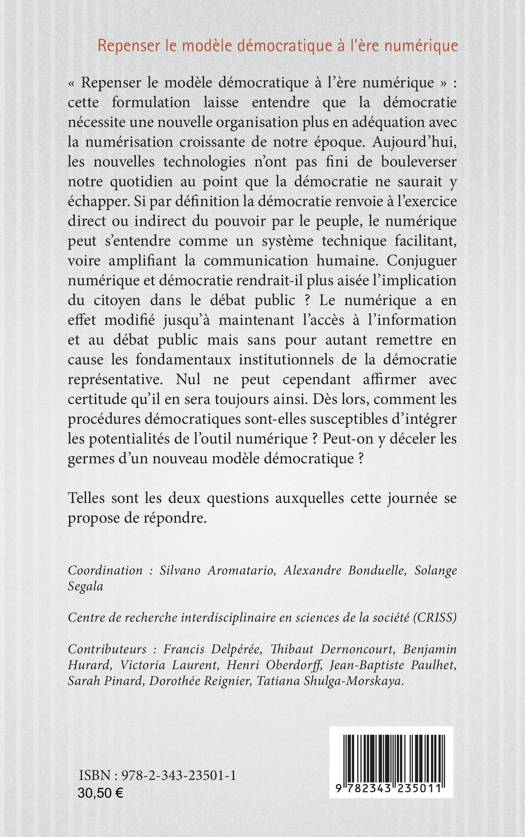 Repenser le modèle démocratique à l'ère numérique: cette formulation laisse entendre que la démocratie nécessite une nouvelle organisation plus en adéquation avec la numérisation croissante de notre époque. Aujourd'hui, les nouvelles technologies n'ont pas fini de bouleverser notre quotidien au point que la démocratie ne saurait y échapper. Si par définition la démocratie renvoie à l'exercice direct ou indirect du pouvoir par le peuple, le numérique peut s'entendre comme un système technique facilitant, voire amplifiant la communication humaine. Conjuguer numérique et démocratie rendrait-il plus aisée l'implication du citoyen dans le débat public ? Le numérique a en effet modifié jusqu'à maintenant l'accès à l'information et au débat public mais sans pour autant remettre en cause les fondamentaux institutionnels de la démocratie représentative. Nul ne peut cependant affirmer avec certitude qu'il en sera toujours ainsi. Dès lors, comment les procédures démocratiques sont-elles susceptibles d'intégrer les potentialités de l'outil numérique ? Peut-on y déceler les germes d'un nouveau modèle démocratique ?