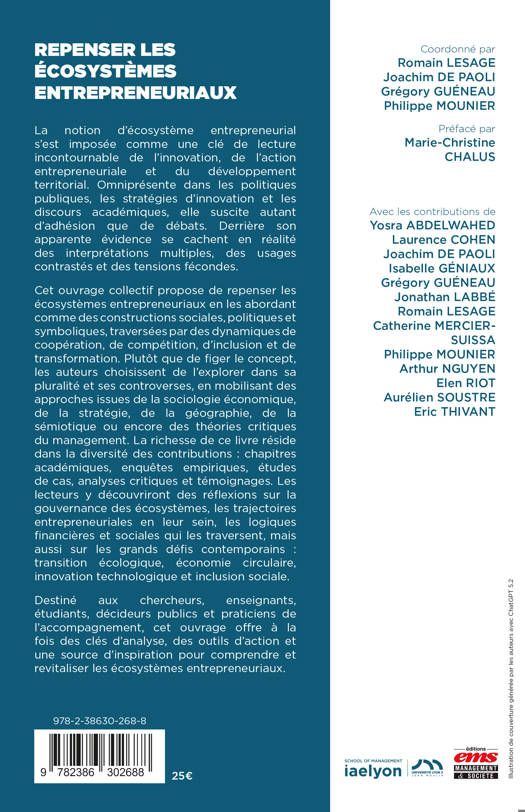 Cet ouvrage collectif propose de repenser les écosystèmes entrepreneuriaux en les abordant comme des constructions sociales, politiques et symboliques, traversées par des dynamiques de coopération, de compétition, d’inclusion et de transformation. Plutôt que de figer le concept, les auteurs choisissent de l’explorer dans sa pluralité et ses controverses, en mobilisant des approches issues de la sociologie économique, de la stratégie, de la géographie, de la sémiotique ou encore des théories critiques du management. La richesse de ce livre réside dans la diversité des contributions : chapitres académiques, enquêtes empiriques, études de cas, analyses critiques et témoignages. Les lecteurs y découvriront des réflexions sur la gouvernance des écosystèmes, les trajectoires entrepreneuriales en leur sein, les logiques financières et sociales qui les traversent, mais aussi sur les grands défis contemporains : transition écologique, économie circulaire, innovation technologique et inclusion sociale.