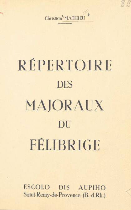 4. Répertoire des majoraux du félibrige, 1876-1965