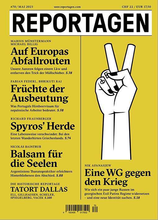 Grosse Reportagen im Taschenbuch. Herausragende Autor:innen berichten, was hinter den Kulissen des Weltgeschehens passiert.In dieser Ausgabe:- Auf Europas Abfallrouten. Unsere Autoren folgen einem Lkw und entlarven den Trick der Müllschieber. Von Marius Münstermann, Michael Billig- Eine WG gegen den Krieg. Wie sich ein paar junge Russen im georgischen Exil Putins Regime widersetzen - und eine neue Identität suchen. Von Nik Afanasjew- Früchte der Ausbeutung. Was Portugals Himbeervisum für nepalesische Arbeiter bedeutet. Von Fabian Federn, Bhrikuti Rai- Syros' Herde. Eine Lebensweise verschwindet: Bei den letzten Wanderhirten Griechenlands. Von Richard Fraunberger- Balsam für die Seelen. Argentiniens Thanatopraktiker erleichtern Hinterbliebenen den Abschied. Von Nicolás Baintrub- Die historische Reportage: Tatort Dallas. Chronologie der Ermordung von John F. Kennedy. Von Erik G. Ell, Rolf Gillhausen, Max Scheler, Yvonne Spiegelberg, Egon Vacek