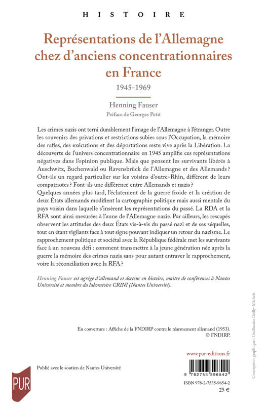 Les crimes nazis ont terni durablement l’image de l’Allemagne à l’étranger. Outre les souvenirs des privations et restrictions subies sous l’Occupation, la mémoire des rafles, des exécutions et des déportations reste vive après la Libération. La découverte de l’univers concentrationnaire en 1945 amplifie ces représentations négatives dans l’opinion publique. Mais que pensent les survivants libérés à Auschwitz, Buchenwald ou Ravensbrück de l’Allemagne et des Allemands ? Ont-ils un regard particulier sur les voisins d’outre-Rhin, différent de leurs compatriotes ? Font-ils une différence entre Allemands et nazis ?
