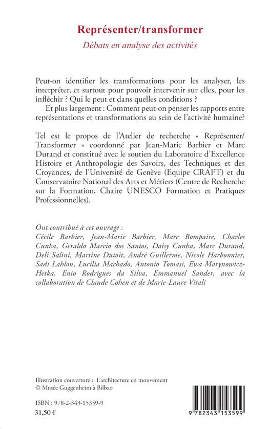Peut-on identifier les transformations pour les analyser, les interpréter, et surtout pour pouvoir intervenir sur elles, pour les infléchir ? Qui le peut et dans quelles conditions ? Et plus largement : Comment peut-on penser les rapports entre représentations et transformations au sein de l'activité humaine? Tel est le propos de l'Atelier de recherche « Représenter/Transformer » coordonné par Jean-Marie Barbier et Marc Durand et constitué avec le soutien du Laboratoire d'Excellence Histoire et Anthropologie des Savoirs, des Techniques et des Croyances, de l'Université de Genève (Equipe CRAFT) et du Conservatoire National des Arts et Métiers (Centre de Recherche sur la Formation, Chaire UNESCO Formation et Pratiques Professionnelles).