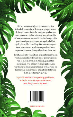 In de stijl van Heart of Darkness en Lord of the Flies is Republiek van licht een prachtig geschreven, subtiele, maar ook zeer spannende fabel over de tijd waarin wij leven. Een unieke roman die voorbestemd lijkt een moderne klassieker te worden.