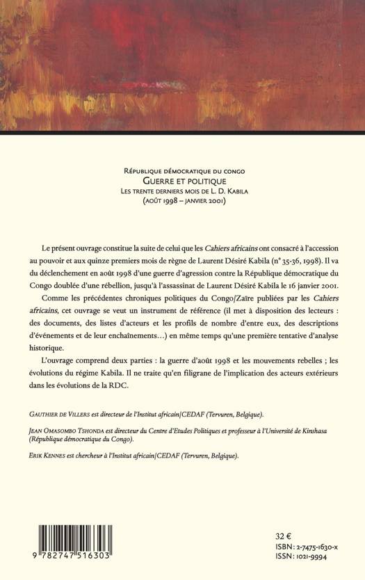 4. RÉPUBLIQUE DÉMOCRATIQUE DU CONGO : GUERRE ET POLITIQUE - Cahiers Africains