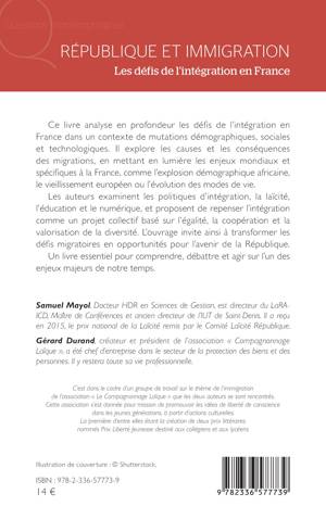 Ce livre analyse en profondeur les défis de l'intégration en France dans un contexte de mutations démographiques, sociales et technologiques. Il explore les causes et les conséquences des migrations, en mettant en lumière les enjeux mondiaux et spécifiques à la France, comme l'explosion démographique africaine, le vieillissement européen ou l'évolution des modes de vie. Les auteurs examinent les politiques d'intégration, la laïcité, l'éducation et le numérique, et proposent de repenser l'intégration comme un projet collectif basé sur l'égalité, la coopération et la valorisation de la diversité. L'ouvrage invite ainsi à transformer les défis migratoires en opportunités pour l'avenir de la République. Un livre essentiel pour comprendre, débattre et agir sur l'un des enjeux majeurs de notre temps.