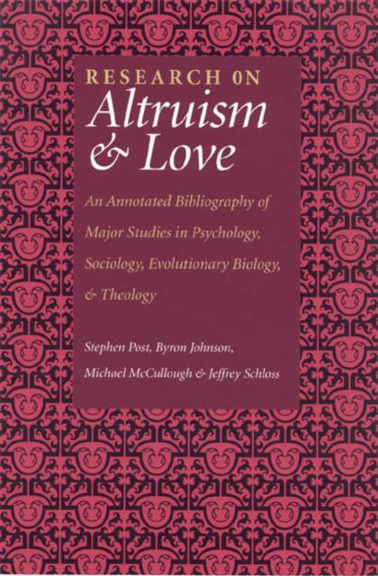 Research on Altruism and Love is a compendium of annotated bibliographies reviewing literature and research studies on the nature of love. An essay introduces each of the annotated bibliographies.