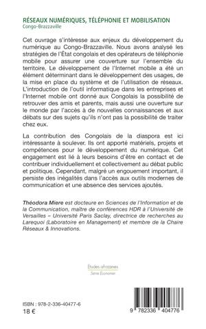 Cet ouvrage s’intéresse aux enjeux du développement du numérique au Congo-Brazzaville. Nous avons analysé les stratégies de l’état congolais et des opérateurs de téléphonie mobile pour assurer une couverture sur l’ensemble du territoire. Le développement de l’Internet mobile a été un élément déterminant dans le développement des usages, de la mise en place du système et de l’utilisation de réseaux. L’introduction de l’outil informatique dans les entreprises et l’Internet mobile ont donné aux Congolais la possibilité de retrouver des amis et parents, mais aussi une ouverture sur le monde par l’accès à de nouvelles connaissances et aux débats sur des sujets qu’ils n’ont pas la possibilité de traiter chez eux. La contribution des Congolais de la diaspora est ici intéressante à soulever. Ils ont apporté matériels, projets et compétences pour le développement du numérique. Cet engagement est lié à leurs besoins d’être en contact et de contribuer individuellement et collectivement au débat public et politique. Cependant, malgré un engouement important, il persiste des inégalités dans l’accès aux outils modernes de communication et une absence des services ajoutés.