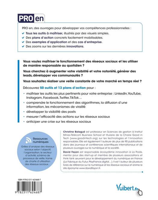 YouTube, Facebook, Twitter, LinkedIn, Instagram, Tik Tok, Twitch : toutes les dernières fonctionnalités des médias sociaux sont couvertes ainsi que leurs stratégies d’utilisation décrites selon l’organisation et les métiers concernés (community manager, webmestre, DPO, etc.).