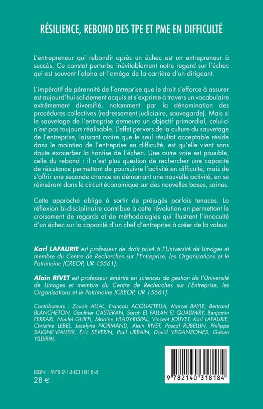 L'entrepreneur qui rebondit après un échec est un entrepreneur à succès. Ce constat perturbe inévitablement notre regard sur l'échec qui est souvent l'alpha et l'oméga de la carrière d'un dirigeant. L'impératif de pérennité de l'entreprise que le droit s'efforce à assurer est aujourd'hui solidement acquis et s'exprime à travers un vocabulaire extrêmement diversifié, notamment par la dénomination des procédures collectives (redressement judiciaire, sauvegarde). Mais si le sauvetage de l'entreprise demeure un objectif primordial, celui-ci n'est pas toujours réalisable. L'effet pervers de la culture du sauvetage de l'entreprise, laissant croire que le seul résultat acceptable réside dans le maintien de l'entreprise en difficulté, est qu'elle vient sans doute exacerber la hantise de l'échec. Une autre voie est possible, celle du rebond : il n'est plus question de rechercher une capacité de résistance permettant de poursuivre l'activité en difficulté, mais de s'offrir une seconde chance en démarrant une nouvelle activité, en se réinsérant dans le circuit économique sur des nouvelles bases, saines. Cette approche oblige à sortir de préjugés parfois tenaces. La réflexion bi-disciplinaire contribue à cette révolution en permettant le croisement de regards et de méthodologies.
