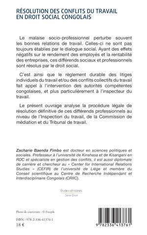 Le malaise socio-professionnel perturbe souvent les bonnes relations de travail. Celles-ci ne sont pas toujours établies par le dialogue social. Ayant des effets négatifs sur le rendement des employés et la rentabilité des entreprises, ces différends sociaux et professionnels sont résolus par le droit social. C’est ainsi que le règlement durable des litiges individuels du travail et/ou des conflits collectifs du travail fait appel à l’intervention des autorités compétentes congolaises, et plus particulièrement à l’inspecteur du travail. Le présent ouvrage analyse la procédure légale de résolution définitive de ces différends professionnels au niveau de l’Inspection du travail, de la Commission de médiation et du Tribunal de travail.