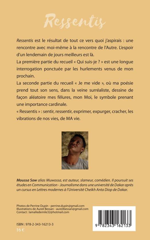 La première partie du recueil « Qui suis-je ? » est une longue interrogation ponctuée par les hurlements venus de mon prochain. La seconde partie du recueil « Je me vide », où ma poésie prend tout son sens, dans la veine surréaliste, dessine de façon aléatoire mes fêlures, mon Moi, le symbole prenant une importance cardinale. « Ressentis » : sentir, ressentir, exprimer, expurger, cracher, les vibrations de nos vies, de MA vie.