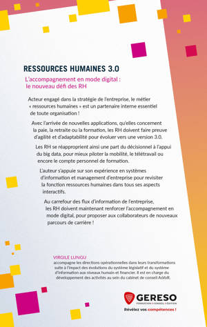 L’auteur s’appuie sur son expérience en systèmes d’information et management d’entreprise pour revisiter la fonction ressources humaines dans tous ses aspects interactifs.
