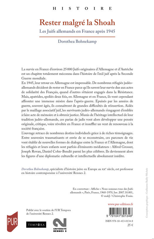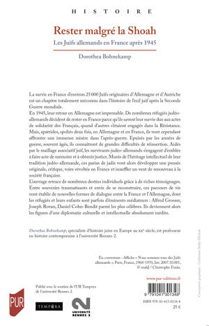 La survie en France d’environ 25 000 Juifs originaires d’Allemagne et d’Autriche est un chapitre totalement méconnu dans l’histoire de l’exil juif après la Seconde Guerre mondiale. En 1945, leur retour en Allemagne est impensable. De nombreux réfugiés judéoallemands décident de rester en France parce qu’ils savent leur survie due aux actes de solidarité des Français, quand d’autres s’étaient engagés dans la Résistance. Mais, apatrides, spoliés deux fois, en Allemagne et en France, ils vont cependant affronter une immense misère dans l’après-guerre. Epuisés par les années de guerre, souvent âgés, ils connaîtront de grandes difficultés de réinsertion. Aidés par le maillage associatif juif, les survivants judéo-allemands s’engagent d’emblée à faire acte de mémoire et à obtenir justice. Munis de l’héritage intellectuel de leur tradition judéo-allemande, ces parias de jadis vont alors développer une pensée originale, critique, voire révoltée en France et insuffler un vent de renouveau à la société française. L’ouvrage retrace de nombreux destins individuels grâce à de riches témoignages. Entre souvenirs traumatisants et envie de se reconstruire, ces parcours de vie vont établir de nouvelles formes de dialogue entre la France et l’Allemagne, dont les réfugiés et leurs enfants sont parfois d’éminents médiateurs : Alfred Grosser, Joseph Rovan, Daniel Cohn-Bendit parmi les plus célèbres. Ils deviennent alors les figures d’une diplomatie culturelle et intellectuelle absolument inédite.