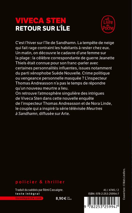 C’est l’hiver sur l’île de Sandhamn. La tempête de neige qui fait rage contraint les habitants à rester chez eux. Un matin, on découvre le cadavre d’une femme sur la plage : la célèbre correspondante de guerre Jeanette Thiels était connue pour son franc-parler avec certaines personnalités influentes, issues notamment du parti xénophobe Nouvelle Suède.