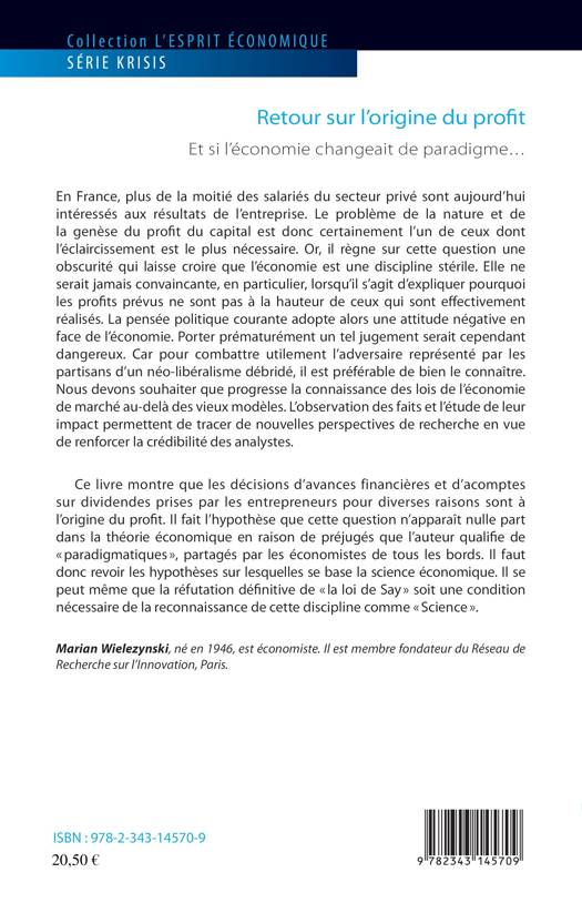Le problème de la nature et de la genèse du profit du capital est l'un de ceux dont l'éclaircissement est le plus nécessaire. Or, une certaine obscurité laisse croire que l'économie est une discipline stérile. Pour combattre le néo-libéralisme débridé, il est préférable de bien le connaître. Ce livre montre que les décisions d'avances financières et d'acomptes sur dividendes prises par les entrepreneurs sont à l'origine du profit. Il fait l'hypothèse que cette question n'apparaît nulle part dans la théorie économique en raison de préjugés partagés par tous. Or la réfutation de « la loi de Say » pourrait être une condition de la reconnaissance de cette discipline comme « Science ».
