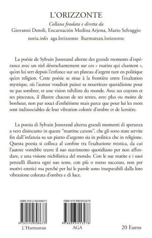 La poésie de Sylvain Josserand alterne des grands moments d'espérance avec un réel désenchantement sur ces « matins qui chantent », qu'on lui sert depuis l'enfance sur un plateau d'argent tant en politique qu'en religion. Cette poésie se situe à la frontière entre l'exaltation mystique, où l'auteur voudrait puiser sa nourriture quotidienne pour ne pas sombrer, et une vision nihiliste du monde. Avec ses crayons et ses pinceaux, il illustre chacun de ses textes, avec plus ou moins de bonheur, non par souci d'esthétisme mais parce que pour lui les mots sont indissociables de leur vibration colorée d'ombre et de lumière.