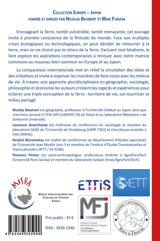 Envisageant la Terre, tantôt vulnérable, tantôt menaçante, cet ouvrage invite à prendre conscience de la finitude du monde. Face aux multiples crises écologiques ou technologiques, on peut décider de retourner à la terre, mais on ne choisit pas le retour de la Terre. Excluant tout fatalisme, le livre explore les aspirations contemporaines à renouer avec notre matrice commune ou nouveau bien commun en Europe et au Japon. La comparaison internationale met en relief la circulation des idées et des initiatives et invite à repenser les manières de faire corps avec les milieux de vie. À travers une approche pluridisciplinaire en géographie, sociologie, philosophie et économie les auteurs croisent les regards et expériences pour éclairer une triple conception de la Terre : territoire de vie, sol nourricier et milieu partagé.