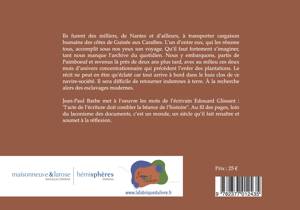 « Retours d’Indes » : ainsi le XVIIIe siècle désignait-il les denrées tropicales importées des Indes occidentales caraïbes dans les ports négriers français lors du troisième trajet du trop fameux commerce triangulaire, qui déporta et déplaça d’Afrique vers les Amériques et les îles de l’Atlantique près de 12 millions de captifs. L'auteur nous fait revivre le voyage d’un bateau négrier au XVIIIe siècle, mettant en scène le banal, mais aussi sordide et horrible quotidien de ces voyages, portant un regard plus accentué sur le troisième côté de ce triangle : le retour des Antilles à Nantes, port sur lequel se concentre le récit. Car Jean-Paul Barbe veut montrer que ces « Retours des Indes » véhiculaient aussi dans les têtes questions et silences, traumatismes et contradictions. Longtemps nul n’en parla. C’est la gageure prise que de tenter de mettre des mots sur ce flux de pensées. Cette docu-fiction reconstituée et réinventée prend appui sur le travail fondateur de l’historien Jean Mettas, qui répertoria l’ensemble des voyages de traite français, et pour beaucoup nantais, du XVIIIe siècle. Jean Paul-Barbe tente d’imaginer, à travers un réseau de courts récits qui s’y inscrivent, ce que put être la vie quotidienne à bord, en cette contre-société monstrueuse et pourtant bien humaine, avant que la « cargaison » ne rejoigne l’infernale exploitation caribéenne. Annexes accessibles via un QR-code inséré dans le livre : - Les trois poèmes qui concluent chacune des parties, mis en musique par Marc-Alexandre Goureau et portés par les voix de Jean François Gascard, Henri Mariel, Nina Kibuanda. - Un dossier “Pour aller plus loin” par Didier Guivarc’h, historien spécialiste de la traite négrière.