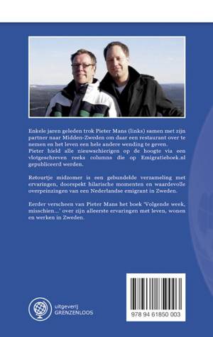 Retourtje Midzomer is een gebundelde verzameling met ervaringen van de afgelopen vier jaren, doorspekt met zowel humoristische momenten als waardevolle overpeinzingen van een Nederlandse emigrant in Zweden.