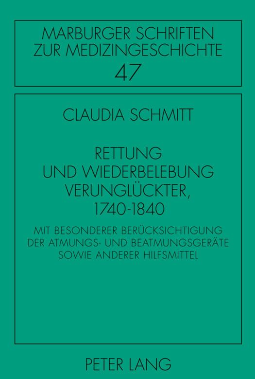 Ab der Mitte des 18. Jahrhunderts gab es ernsthafte Bemühungen zur allgemeinen Verbreitung von Rettungs- und Wiederbelebungsmaßnahmen Verunglückter. In dieser Abhandlung wird die Theorie und Praxis der Rettungs- und Wiederbelebungsmaßnahmen im Zeitraum von 1740 bis 1840 beleuchtet. Ein Schwerpunkt liegt dabei auf den Respirationsgeräten. Darunter wurden Atmungsgeräte zur Rettung Verunglückter und zum Eigenschutz und Beatmungsgeräte zur Wiederbelebung «Scheintoter» verstanden. Zahlreiche Geräte und Rettungskästen werden beschrieben und abgebildet. Neben theoretischen Empfehlungen interessiert außerdem eine Annäherung an die historische Realität, also die tatsächlich geübte Praxis von Rettung und Wiederbelebung. Dies wird verdeutlicht anhand von Rettungsberichten und am Beispiel des Rettungswesens der Stadt Mainz.