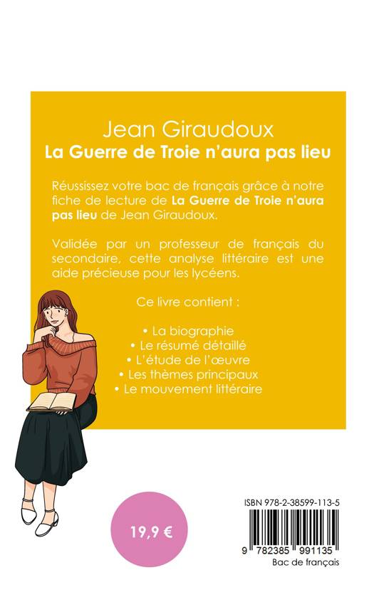 Réussissez votre bac de français 2026 grâce à notre fiche de lecture de la pièce La Guerre de Troie n'aura pas lieu de Jean Giraudoux ! Validée par un professeur de français du secondaire, cette analyse littéraire est une aide précieuse pour tous les lycéens. Grâce à notre travail éditorial, les points suivants n'auront plus aucun secret pour vous : la biographie de l'écrivain, le résumé du livre, l'étude de l'oeuvre, l'analyse des thèmes principaux à connaître et le mouvement littéraire auquel est rattaché l'auteur.